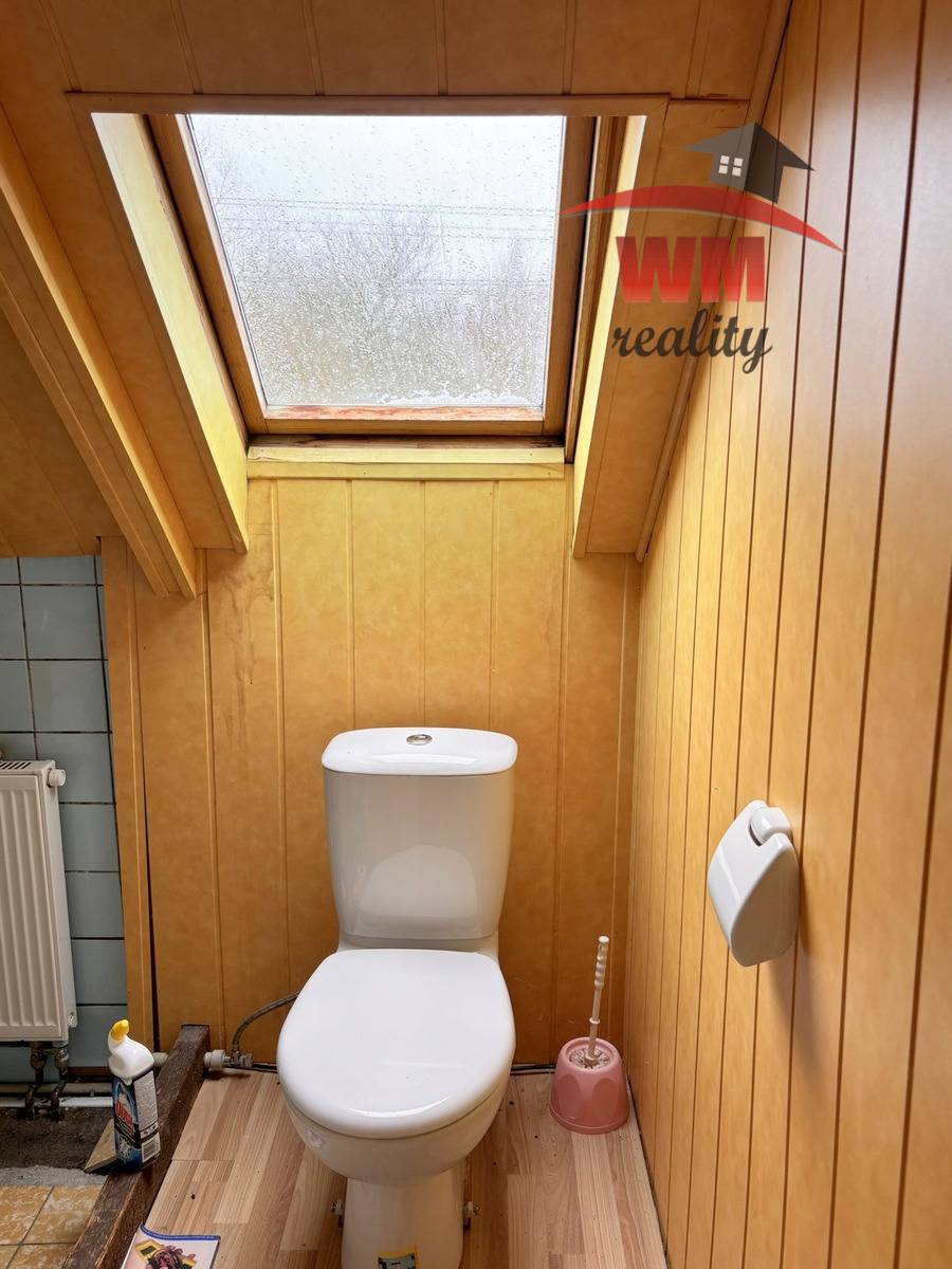 Do prvního patra se dostaneme po užším schodišti a zde jsou dva prostorné pokoje a WC.