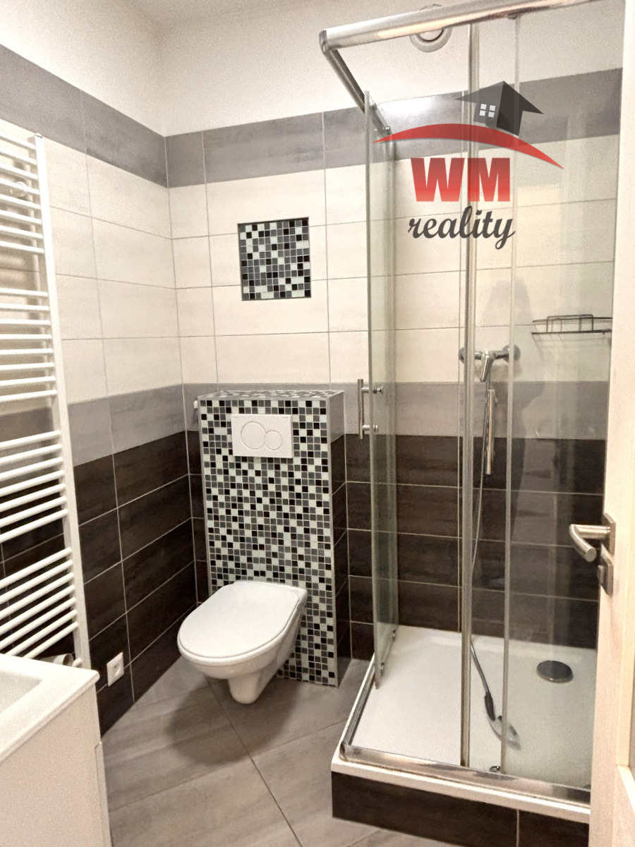 V bytě je osazena kuchyňská linka, trouba se sporákem. V koupelně je sprchový kout a wc je součástí.